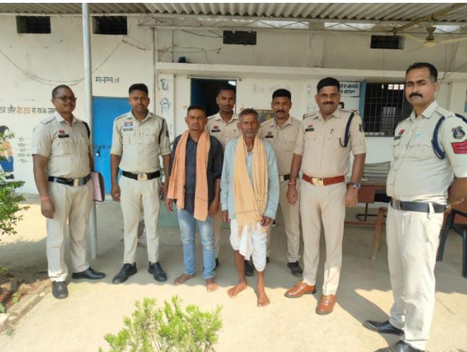 भटगांव/VOCG.24…/ ग्राम अनुजनगर चौकी लटोरी निवासी फुलमतिया राजवाड़े ने चौकी लटोरी में रिपोर्ट दर्ज कराया कि इसके सम्मिलित खाता के भूमि में दिनांक 12.06.2025 के रात्रि में भैंसा बांधने की बात को लेकर इसके पति इंदर साय राजवाड़े को इसका देवर चेतन राजवाड़े एवं भतीजा कृष्णा राजवाड़े के द्वारा गाली-गलौज कर जान से मारने की धमकी देकर हत्या करने की नियत से दोनों मारपीट किए तथा रोड़ में उठाकर पटक दिए जिसे ईलाज हेतु लटोरी अस्पताल ले गए जहां से डॉक्टर के द्वारा रायपुर हेतु रेफर कर दिया गया। प्रार्थियां की रिपोर्ट पर धारा 351(3), 109(2), 3(5) बीएनएस के तहत मामला पंजीबद्ध किया गया।चौकी लटोरी पुलिस ने मामले की विवेचना के दौरान आरोपी चेतन राजवाड़े पिता कृष्णदेव राजवाडे उम्र 28 वर्ष एवं कृष्णदेव राजवाड़े पिता स्व. राम राजवाडे उम्र 62 साल दोनों निवासी अनुजनगर चौकी लटोरी को घेराबंदी कर पकड़ा गया। पूछताछ पर दोनों आरोपियों के अपराध कबूल करने पर उन्हें गिरफ्तार किया गया। इस कार्यवाही में चौकी प्रभारी लटोरी अरूण गुप्ता व उनकी टीम सक्रिय रही।
