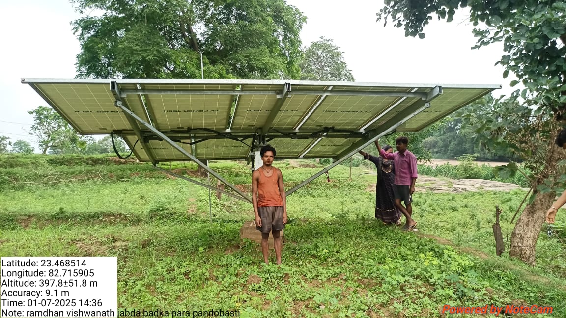 सूरजपुर/03 जुलाई 2025/ सौर सुजला योजना अंतर्गत वर्ष 2023-24 में ओड़गी के ग्राम-चपदा के हितग्राही श्री रामधन पण्डो द्वारा 03 एच.पी./सबमर्सिबल क्षमता का सोलर पंप लगवाया गया था।स्थापित सोलर पंप खराब होने के वजह से अकार्यशील था।ग्राम चपदा के भ्रमण के दौरान कलेक्टर श्री एस.जयवर्धन को श्री रामधन पण्डो ने अपनी समस्या बताई, कलेक्टर ने इसे तुरंत संज्ञान मे लेकर क्रेडा के संबंधित अधिकारी को त्वरित सुधार हेतु निर्देशित किया। कलेक्टर के निर्देश के अनुपालन में क्रेडा विभाग द्वारा त्वरित कार्यवाही की गई और सोलर पंप को कार्यशील किया गया, वर्तमान में संयंत्र कार्यशील है। जिससे हितग्राही ने जिला प्रशासन के इस पहल पर खुशी जाहिर की है। उसने बताया है कि अब वह बिना किसी रुकावट के खेती कर सकता है। इस कार्य के लिए रामधन पण्डो ने जिला प्रशासन को धन्यवाद ज्ञापित किया है ।