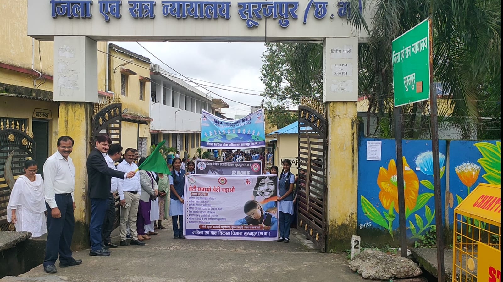 सूरजपुर/ 11 जुलाई 2025/ विश्व जनसंख्या दिवस के महत्वपूर्ण अवसर पर आज सूरजपुर में जनसंख्या नियंत्रण, बालिका शिक्षा और सशक्तिकरण के प्रति जन जागरूकता बढ़ाने के उद्देश्य से एक भव्य रैली का आयोजन किया गया। यह कार्यक्रम छत्तीसगढ़ राज्य विधिक सेवा प्राधिकरण, बिलासपुर के दिशा-निर्देशन तथा माननीय श्रीमती विनीता वार्नर, प्रधान जिला एवं सत्र न्यायाधीश/अध्यक्ष जिला विधिक सेवा प्राधिकरण, सूरजपुर के मार्गदर्शन सम्पन्न हुआ। रैली को श्री मानवेन्द्र सिंह, प्रथम जिला एवं अपर सत्र न्यायाधीश सूरजपुर ने जिला न्यायालय परिसर से हरी झंडी दिखाकर रवाना किया। इस औसर पर न्यायिक न्यायिक समुदाय और विभिन्न सरकारी विभागों के महत्वपूर्ण अधिकारियों की उपस्थिति ने कार्यक्रम को और गरिमामय बना दिया। जिला न्यायालय सूरजपुर के समस्त न्यायिक अधिकारीयों के साथ-साथ, महिला बाल विकास विभाग और शिक्षा विभाग के वरिष्ठ अधिकारी भी इस जागरूकता अभियान में सक्रिय रूप से शामिल हुए। यह जागरूकता रैली जिला न्यायालय सूरजपुर से आरंभ होकर शहर के मुख्य मार्गों से गुजरी जिसमें पुराना कलेक्टोरेट सूरजपुर भी शामिल था, और अंततः शासकीय कन्या आत्मानंद विद्यालय सूरजपुर पर समाप्त हुई। रैली में प्रतिभागियों ने उत्साह पूर्वक विश्व जनसंख्या दिवस के महत्व को दर्शाने वाले बैनर उठाए हुए थे, जो जनसंख्या वृद्धि के प्रमाओं और परिवार नियोजन की आवश्यकता पर प्रकाश डाल रहे थे। इसके अतिरिक्त, महिला एवं बाल विकास विभाग की प्रमुख योजना “बेटी बचाओं बेटी पढ़ाओ”, और “सेव गर्ल चाइल्ड” जैसे सशक्त संदेशों वाले बैनर भी रैली का अभिन्न अंग थे। इन बैनरों के माध्यम से समाज में लड़कीयों के महत्व, उनकी शिक्षा और सुरक्षा को लेकर जागरूकता फैलाई गई।
