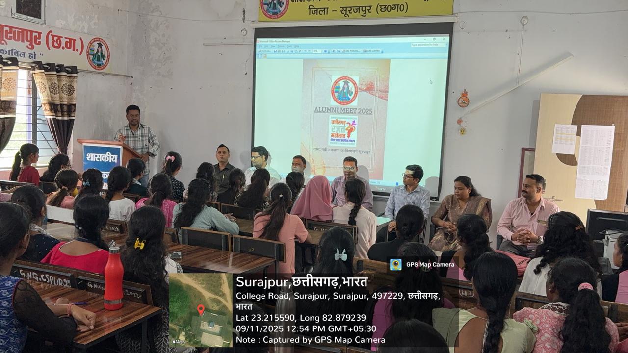 सूरजपुर/11 सितंबर 2025/ कन्या महाविद्यालय में छत्तीसगढ़ रजत महोत्सव के उपलक्ष्य में मेगा एलुमनी मीट का आयोजन किया गया। कार्यक्रम को संबोधित करते हुए संस्था के प्राचार्य बृजलाल साहू ने भूतपूर्व छात्राओं का स्वागत करते हुए उनके उज्जवल भविष्य के लिए शुभकामनाएं प्रेषित किया । साथ ही महाविद्यालय के संपर्क में निरंतर रहने के लिए प्रेरित किया एवं अपने विशिष्ट उपलब्धियां को महाविद्यालय के साथ साझा करने के लिए कहा। इस अवसर पर अग्रणी महाविद्यालय के वरिष्ठ प्राध्यापक डॉक्टर अखिलेश द्विवेदी ने भूतपूर्व छात्राओं को संबोधित करते हुए महाविद्यालय के उत्थान एवं कल्याण के लिए अपना बहुमूल्य योगदान देने के लिए अनुरोध किया। कार्यक्रम के दौरान भूतपूर्व छात्राओं ने कॉलेज में बिताए महत्वपूर्ण स्मरणों को साझा किया साथ ही कॉलेज के उत्तरोत्तर प्रगति के लिए रचनात्मक सुझाव प्रदान किया । इस मौके पर महाविद्यालय के प्राध्यापक दिग्विजय सिंह ,डॉक्टर विनोद साहू ,पुनीत गुप्ता, रोहित सेठ, डॉक्टर धनंजय पांडे, पूजांजली भगत सहित बड़ी मात्रा में छात्राएं उपस्थित रही।