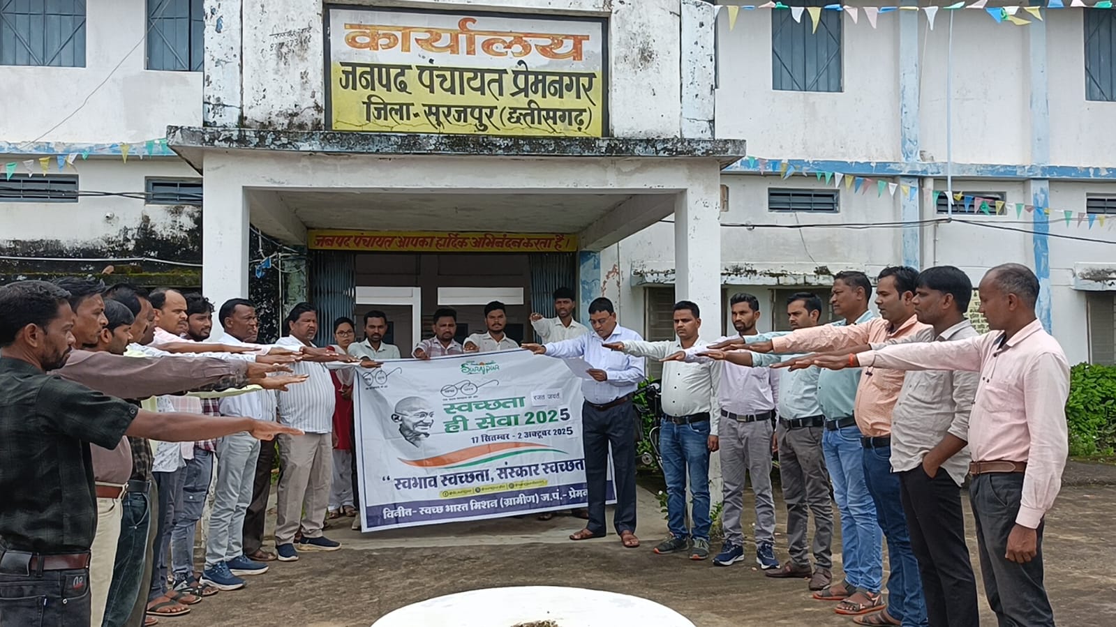 सूरजपुर/vocg.24… कलेक्टर श्री एस. जयवर्धन के निर्देशानुसार एवं जिला पंचायत सीईओ श्री विजेन्द्र सिंह पाटले के मार्गदर्शन में आज जिले के सभी 6 जनपदों में स्वच्छता ही सेवा अभियान 2025 का शुभारंभ किया गया। कार्यक्रम के दौरान उपस्थित अतिथियों एवं कर्मचारियों ने स्वच्छता की शपथ ली।