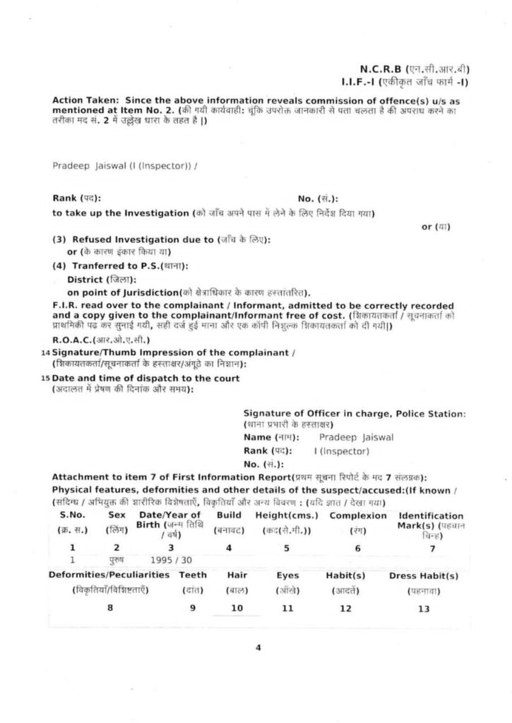 पुलिस ने उक्त शिकायत के आधार पर होली क्रॉस विमेन्स कॉलेज की प्राचार्या शांता जोसफ और फेसबुक पेज के संचालक के विरुद्ध भारतीय दंड संहिता की धारा 505(1)(B) के तहत अपराध पंजीबद्ध कर जाँच प्रारंभ कर दी है।