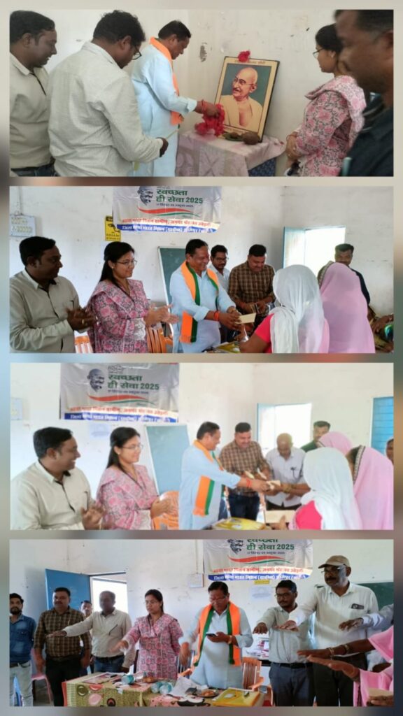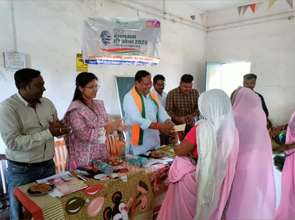 कार्यक्रम में स्वच्छता श्रमदान एवं स्वच्छता शपथ दिलाई गई। इस दौरान स्वच्छता अभियान में सक्रिय योगदान देने वाली स्वच्छाग्रही दीदियों को सम्मानित किया गया।