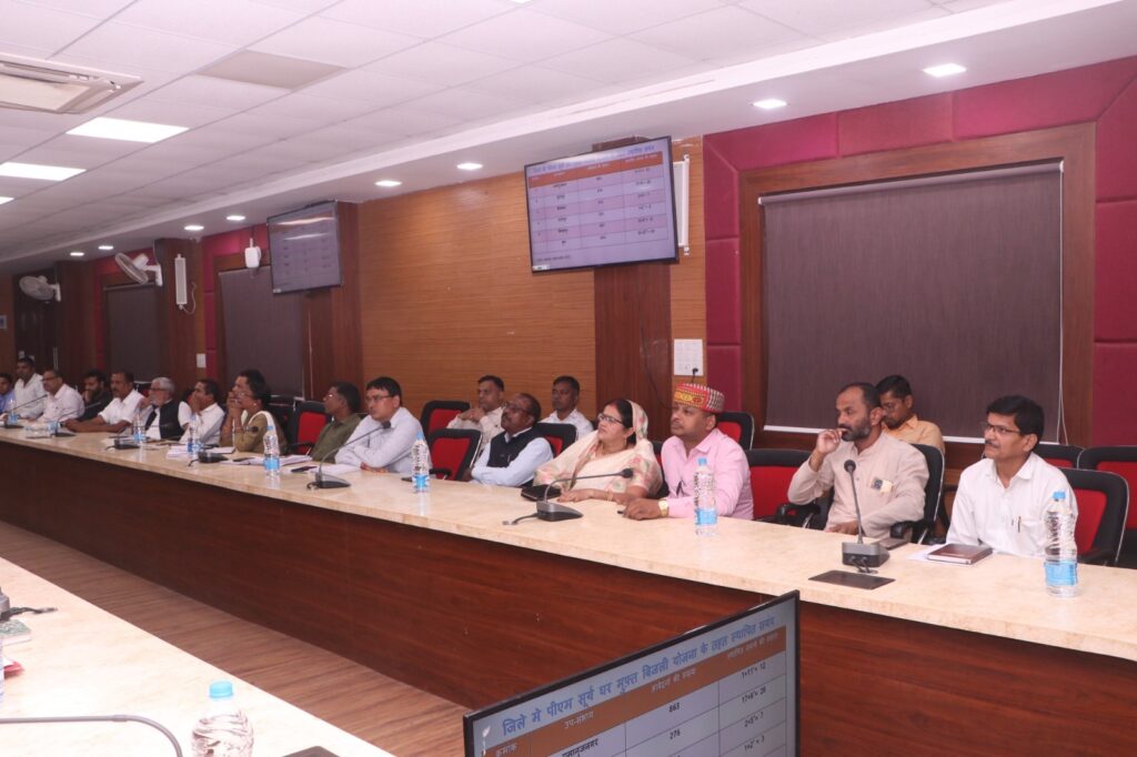 सूरजपुर/07 नवंबर 2025/ कलेक्टर श्री एस. जयवर्धन की अध्यक्षता में आज पीएम सूर्य घर मुफ्त बिजली योजना की समीक्षा बैठक कलेक्ट्रेट सभाकक्ष में आयोजित की गई। बैठक में योजना के क्रियान्वयन की वर्तमान स्थिति का विस्तृत जायजा लिया गया तथा अधिकारियों को कार्य में गति लाने के निर्देश दिए गए।
