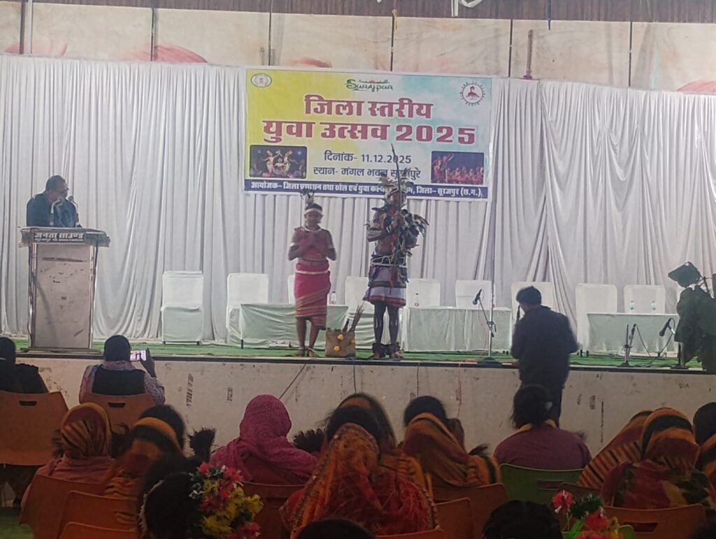 सूरजपुर/ छत्तीसगढ़ शासन खेल एवं युवा कल्याण विभाग रायपुर के निर्देशानुसार प्रतिवर्ष की भांति इस वर्ष भी जिला स्तरीय युवा उत्सव का आयोजन मंगल भवन सूरजपुर में उत्साहपूर्वक किया गया। कार्यक्रम का आयोजन कलेक्टर श्री एस. जयवर्धन तथा जिला पंचायत सीईओ श्री विजेंद्र पाटले के मार्गदर्शन में सम्पन्न हुआ। उत्सव के समापन पर विभिन्न विधाओं में उत्कृष्ट प्रदर्शन करने वाले कलाकारों को पुरस्कृत कर सम्मानित किया गया।