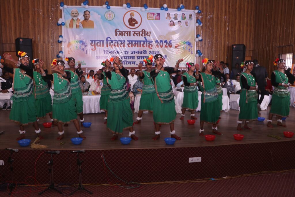 सूरजपुर// स्वामी विवेकानंद की जयंती के अवसर पर डॉ. श्यामा प्रसाद मुखर्जी ऑडिटोरियम, सूरजपुर में आज जिला स्तरीय युवा दिवस समारोह का आयोजन महिला एवं बाल विकास विभाग मंत्री श्रीमती लक्ष्मी राजवाड़े के मुख्य आतिथ्य तथा प्रेमनगर विधायक श्री भूलन सिंह मरावी अध्यक्षता में किया गया। समारोह में बड़ी संख्या में विद्यार्थी स्वामी विवेकानंद की पोशाक में शामिल हुए।