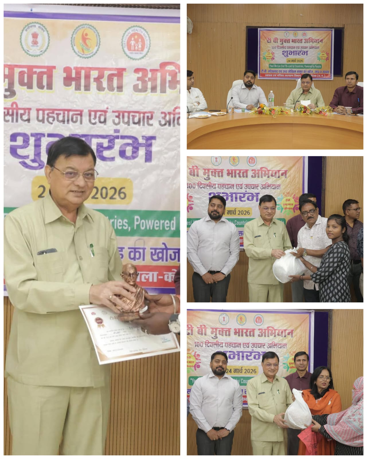 क्षय दिवस के अवसर पर टीबी मुक्त भारत अभियान के तहत जिले में 100 दिवसीय विशेष पहचान एवं उपचार अभियान का शुभारंभ आज कलेक्ट्रेट सभाकक्ष में छत्तीसगढ़ शासन के उद्योग, वाणिज्य, श्रम, आबकारी एवं सार्वजनिक उपक्रम मंत्री लखनलाल देवांगन के मुख्य आतिथ्य में किया गया इस अभियान के तहत जिले में टीबी के संभावित मरीजों एवं उच्च जोखिम वाले समूहों की पहचान कर उनकी समय पर जांच एवं उपचार सुनिश्चित किया जाएगा ताकि टीबी उन्मूलन के लक्ष्य को प्रभावी रूप से प्राप्त किया जा सके